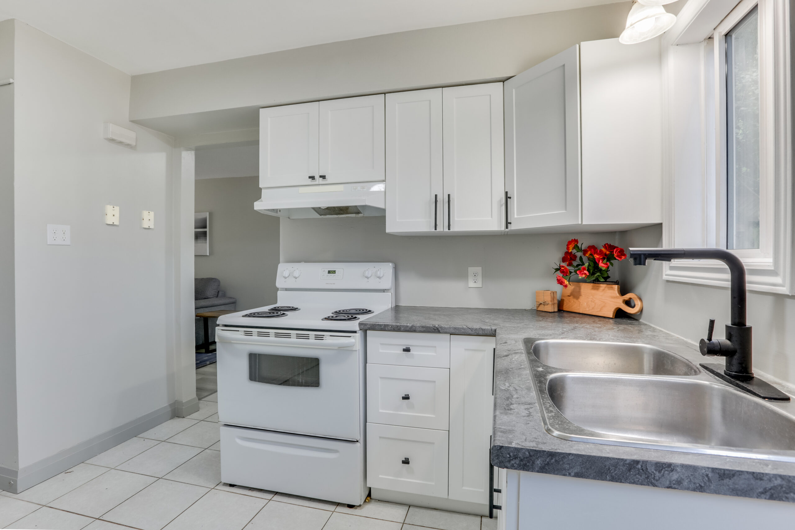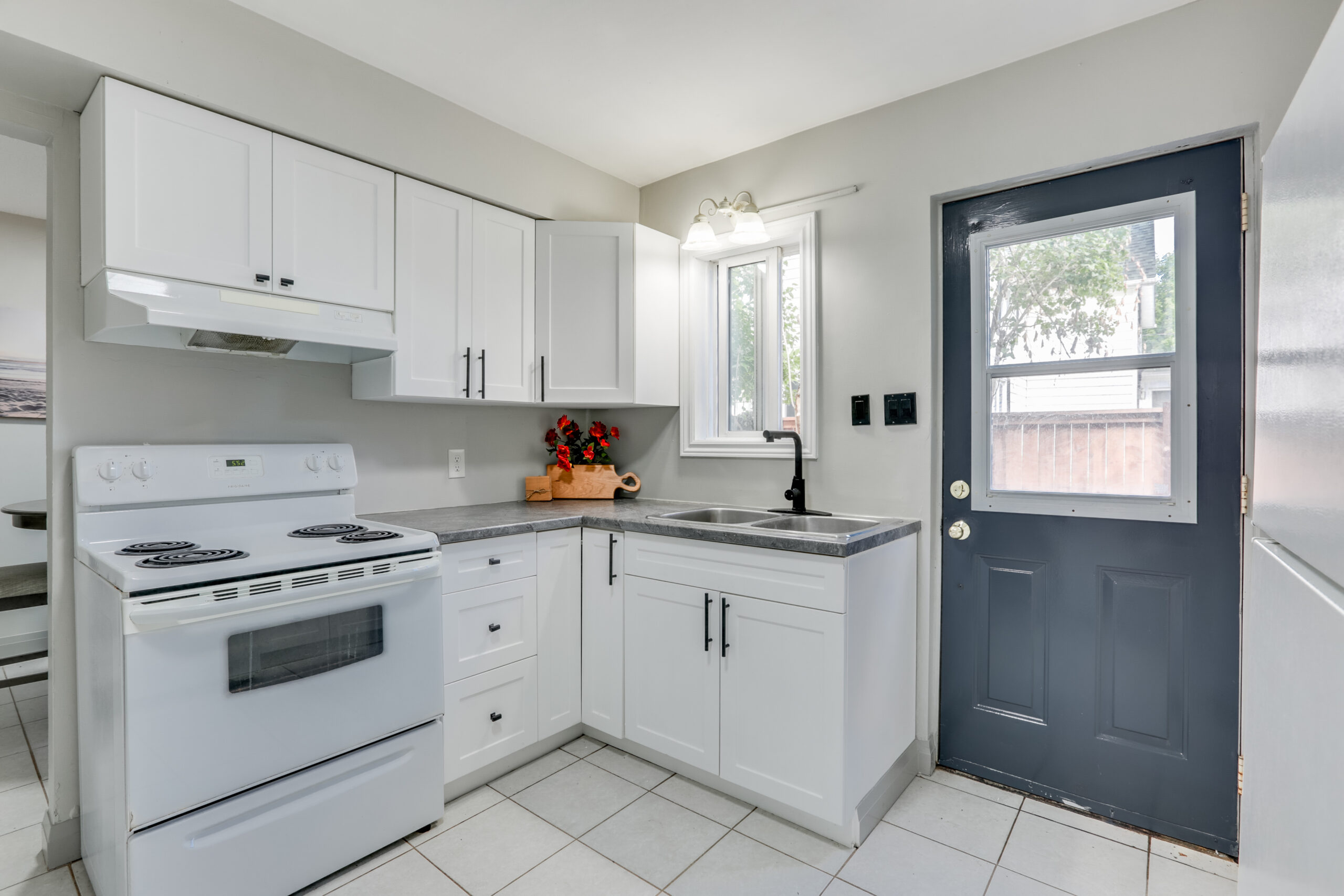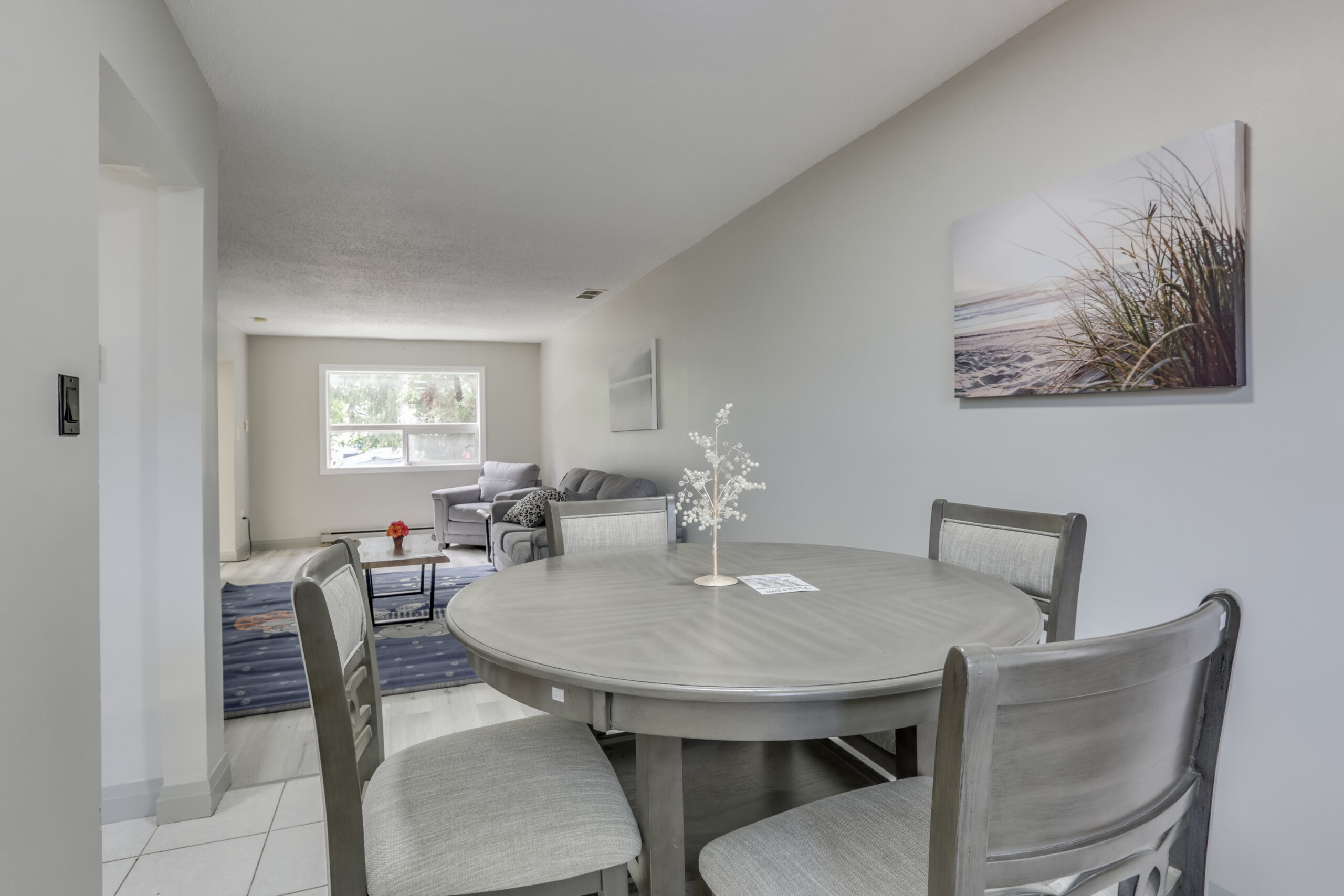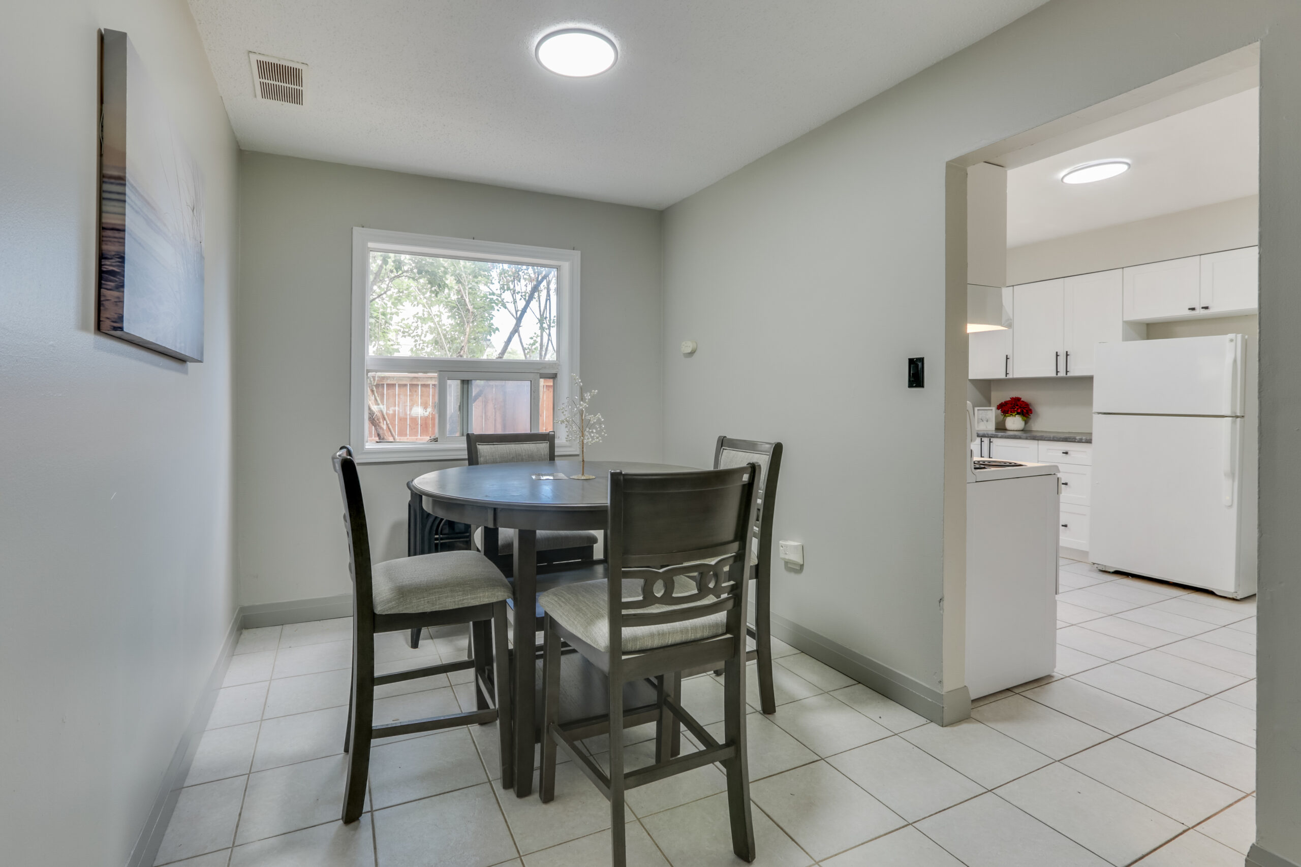 Step into a spacious open-concept main floor featuring a welcoming living and dining area with new flooring and updated finishes throughout. The modern kitchen includes crisp white cabinetry, plenty of storage, and access to a private back patio—perfect for enjoying morning coffee or BBQ evenings.