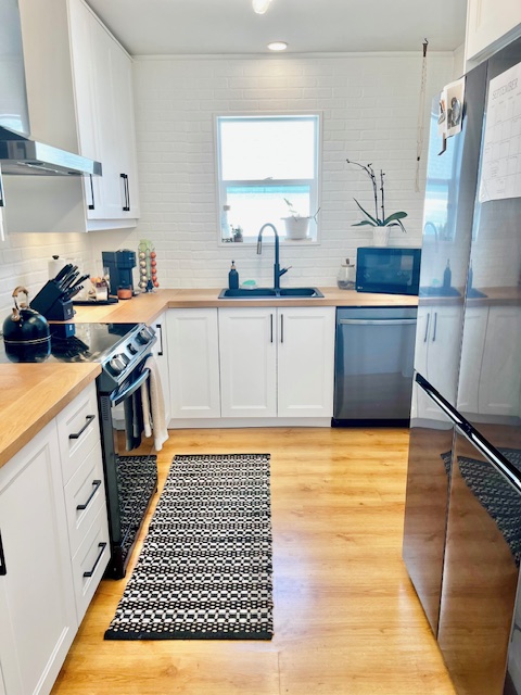 This bright and inviting home features a stunning new kitchen with modern finishes, a beautifully updated bathroom, and hardwood flooring throughout. The spacious living and dining area includes a cozy faux fireplace, creating a warm and welcoming atmosphere.
